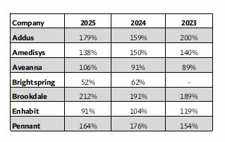 In April, Enhabit posted a 9.10% MoM decrease in its stock price but is still up 2.30% for the year. In early May, Barb Jacobsmeyer, president and CEO of Enhabit praised its Q1 performance, stating “Enhabit’s first quarter 2025 results are a product of steadfast execution of our strategies,” noting that “Home health census grew 3.7% sequentially and hospice census grew 12.3% year over year.”